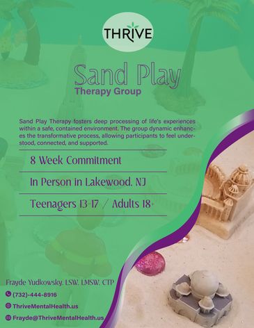 The Sand Play Therapy Group fosters self-expression and healing. Clients create worlds in a sand tray using miniatures, allowing deep emotional processing with minimal verbalization. This bottom-up approach engages the subconscious, promoting insight and transformation. In a group setting, the dynamic enhances the process, as participant